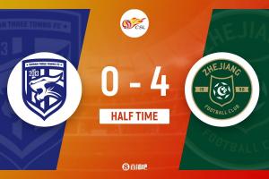 上半场补时9分钟。半场战罢,武汉三镇0-4浙江队。